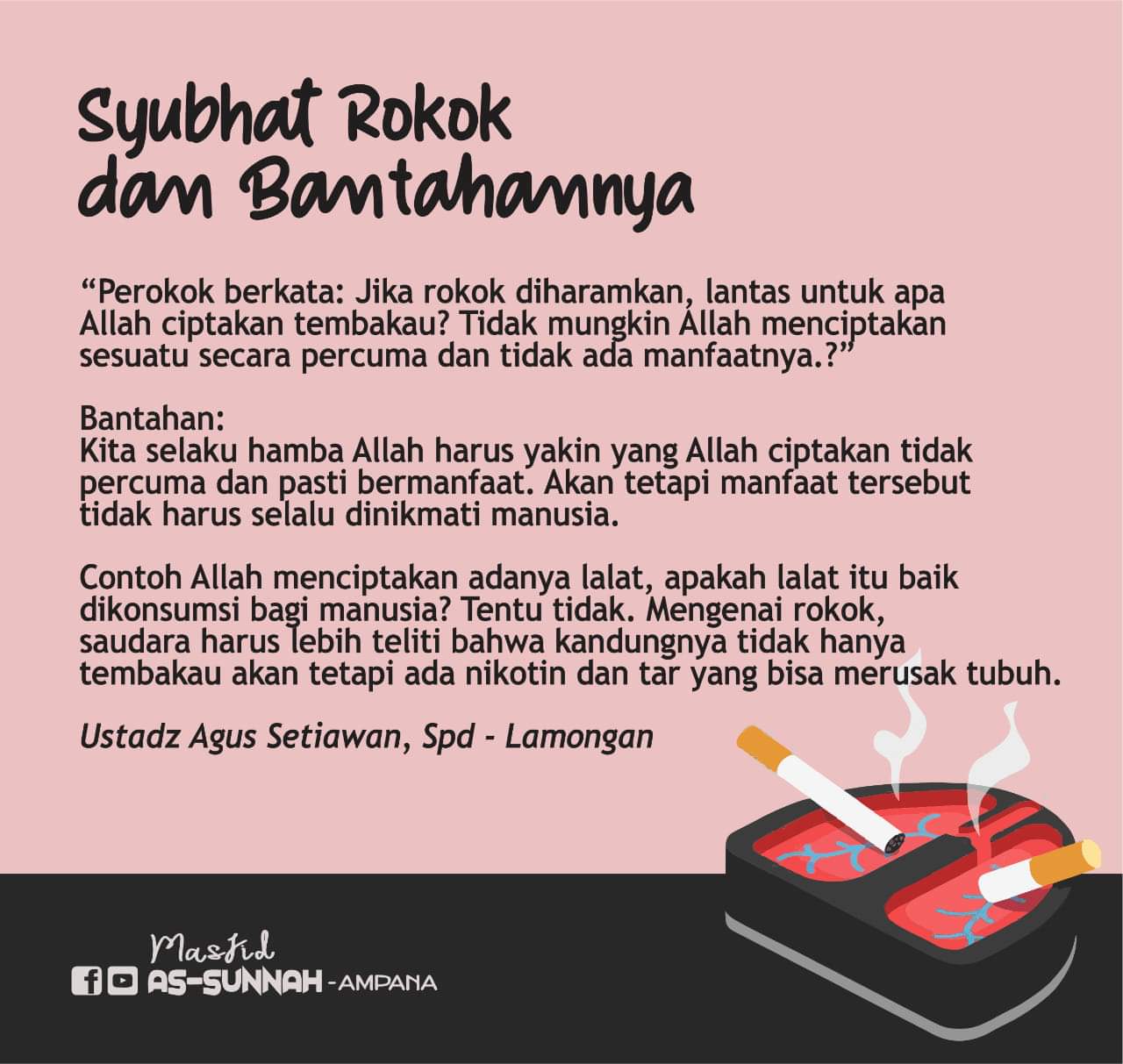 🚬 “Perokok berkata : Jika rokok diharamkan , lantas untuk apa Allah ciptakan tembakau? Tidak mungkin Allah menciptakan sesuatu secara percuma dan tidak ada manfa ...