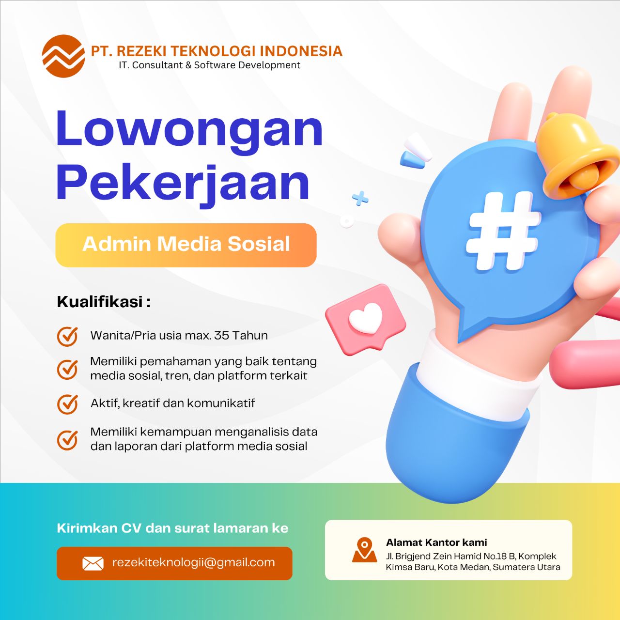 Lowongan ini tidak dikenakan biaya. Apabila kamu dimintai uang sewaktu mendaftar atau wawancara, segera laporkan postingan ini.